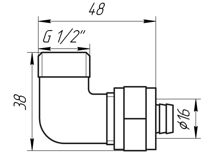 Габариты : 1/2х16 на 16 металлопластиковую трубу