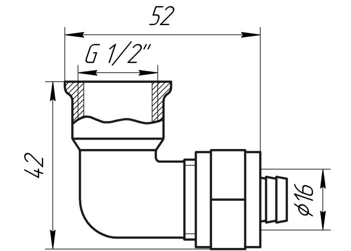 Габариты : 1/2х16 на 16 металлопластиковую трубу