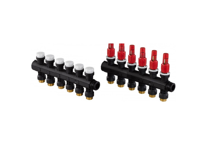 Колектор Uponor Vario Plus 1030583 на 3 виходи, 1030584 на 4 виходи, 1030585 на 5 виходів. Колектор серії Vario Plus оснащений регульованими витратомірами зі шкалою від 0 до 4 л / хв для балансування витрати в петлях. Використовується з колекторним комплектом арт. 1009209. Підключення правої чи лівої з торцевим ущільненням, або знизу з використанням кутового з'єднання арт. 1032702. Виходи на петлі має зовнішню різьбу 3/4 "ЗР євроконусом, сумісний з різьбовими адаптерами Uponor 3/4" ВР євроконусом. Особливості: відстань між виходами 50 мм; можливість повного закриття петлі; ручне регулювання; максимальна робоча температура + 60 ° C; максимальний робочий тиск 6 бар. Колір чорний.