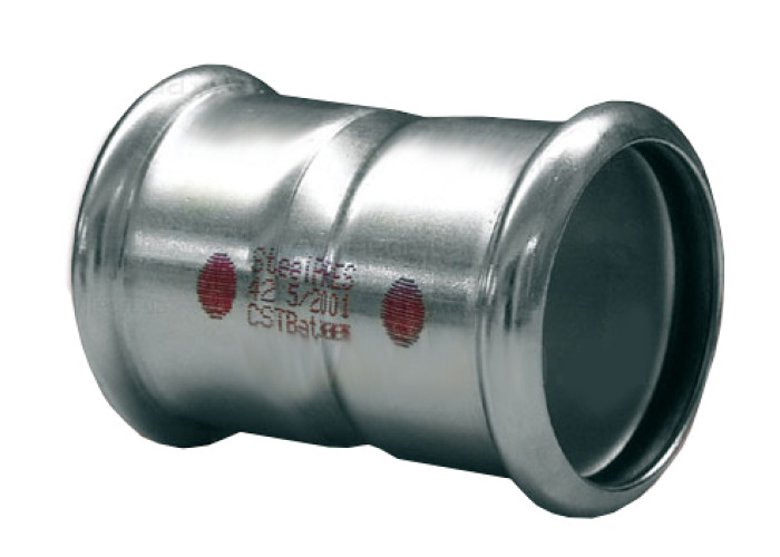 Труби та прес-фітинги Steelpres - перевірена і надійна система «холодного» монтажу, яка дозволяє швидко і якісно створювати складні системи водопостачання, газопостачання та опалення житлових будинків. Прес-фітинги Steelpres виготовляються з нелегованої сталі марки E275 + N (no 1.0225) до ∅54, E 235 (no 1.0038) для діаметрів від ∅76 до 108. Труби і фітинги захищені від корозії зовнішнім гальванічним шаром цинку товщиною не менше 10 мікрон. Прес-фітинги Steelpres мають стійке до стирання червоне маркування із зазначенням заводу-виробника, діаметра і заводського артикулу. Ущільнювальні кільця EPDM чорного кольору, що застосовуються в прес-фітингах Inoxpres, також встановлені і в прес-фітингах Steelpres. Сталеві труби Steelpres - тонкостінні, поздовжньо-зварні, з високою точністю зварювання. Труби виготовлені з вуглецевої сталі (холоднокатаної сталевої смуги) відповідають нормативним вимогам UNI EN 10305-3. Труби оцинковані з зовнішнього боку (тип матеріалу E 220 CR2S3 no.1.0215) або з двох сторін за способом Сендзимира, без флюсу (тип матеріалу E 190 CR2S4 no.1.0031). В обох випадках товщина покриття становить не менше 10 мікрон. Зварювальний рубець відшліфований, що забезпечує ідеальну герметичність. Труби Steelpres зовнішнього діаметра 15-54 мм пропонуються також в ізоляції з поліпропілену товщиною 1 мм. Труби Steelpres в ізоляції з поліпропілену відповідають нормативним вимогам DIN 4102-1 для будматеріалів класу B2 і є нормально займистими без палаючих крапель. Труби Steelpres поставляються в відрізках довжиною 6 метрів. Прес-система Steelpres з кільцями ущільнювачів FKM зеленого кольору з підвищеною стійкістю до дії температури і масел може застосовуватися в наступних областях: системи зі стисненим повітрям з тиском до PN 16 при залишкових нафтопродуктах класів 1-5, вакуумні системи до 0,2 бар, інертні гази (напр. вуглекислий газ, азот) з тиском до PN16. Для отримання оптимальної герметичності в системах стисненого та розрідженого повітря (рекомендується перед монтажем зволожити кільце ущільнювача водою). Гарантія на системи Steelpres: період відповідальності фірми RM починається з моменту установки продукту і закінчується не пізніше ніж через 10 років експлуатації.