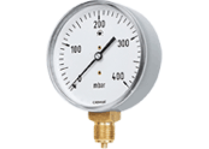 5) Манометри газові ∅63 з нижнім підключенням застосовуються для вимірювання тиску газової середовища не агресивною до міді і її сплавів. Манометр має пофарбований корпус з штампованої сталі, ударостійке акрилове скло, латунне з'єднання і високоточний механізм. Клас точності 1,6.