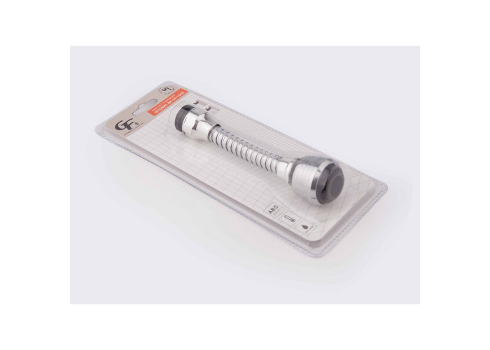 Аератор GF (CRM)-AR-24-15SS дозволить вам заощадити витрати води, а також зробити процес миття рук або посуду більш комфортним за рахунок зниження шуму, кількості хлору, і підвищення м‘якості струменя. Він виконаний з пластику та має хромовану блискучу поверхню. За формою нагадує циліндричний сітчастий фільтр з гнучкою трубою, що дає можливість регулювати напрямок струменя. Виріб кріпиться безпосередньо на вилив змішувача вручну без зусиль.