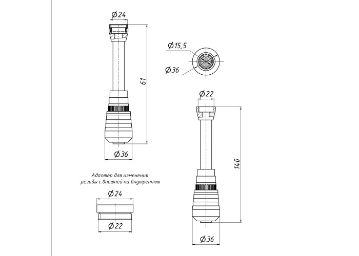 Додаткові характеристики У комплектацію входить адаптер для зміни різьблення з зовнішньої на внутрішню.
