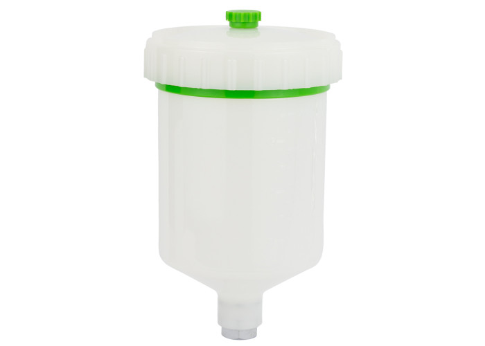 Бачок верхній для фарборозпилювача 600мл FT 3/8" Refine 6817041 - виготовлений з пластика, що дозволяє використовувати більшість лакофарбових матеріалів. На бачку нанесена шкала з розподілами в мл, за допомогою якої можна визначити ступінь наповнення бачка. У нижній частині бачка встановлено різьбове з'єднання FT 3/8". Даний бачок може служити як заміна або як додатковий бачок, для багатьох моделей фарборозпилювачів.