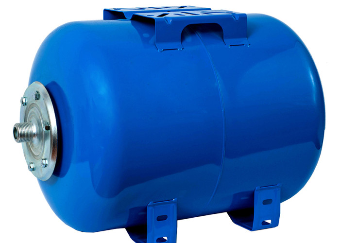 Гідроакумулятор виробництва Україна. Функції гідробака: накопичення води під постійним тиском, що дозволяє насосу включатися не відразу при витраті води з системи водопостачання, а тільки в міру зменшення кількості рідини (зменшення тиску) в гідроакумуляторі; захист системи водопостачання від гідроударів; збір резервної кількості води в системі водопостачання. Технічні характеристики: металевий корпус з легованої пофарбованої сталі; мембрана, виготовлена з синтетичної етилен-пропіленової гуми EPDM. Умови застосування: максимальна температура навколишнього середовища: +40 º; температура накопичуваної рідини: + 99ºС; тиск в повітряній порожнині до 1.6 бар; максимальний тиск в системі водопостачання до 8 бар.