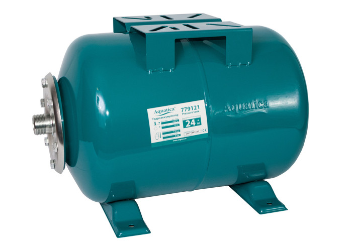 Для роботи системи водопостачання в автоматичному режимі необхідно встановити гідроакумулятор (гідробак) закритого мембранного типу з пневматичним накопичувачем відповідного обсягу, бо реле тиску можуть працювати тільки спільно з гідроакумулятором. Функції гідробака: накопичення води під постійним тиском, що дозволяє насосу включатися не відразу при витраті води з системи водопостачання, а тільки в міру зменшення кількості рідини (зменшення тиску) в гідроакумуляторі; захист системи водопостачання від гідроударів; збір резервної кількості води в системі водопостачання. Технічні характеристики: металевий корпус з легованої пофарбованої сталі; мембрана, виготовлена з синтетичної етилен-пропіленової гуми EPDM. Умови застосування: максимальна температура навколишнього середовища: +40 º; температура накопичуваної рідини: + 99ºС; тиск в повітряній порожнині до 1.6 бар; максимальний тиск в системі водопостачання до 8 бар; термін гарантійного обслуговування: 18 місяців.
