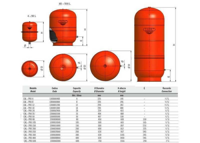 Розширювальні ємності CAL PRO служать для компенсації зміни обєму води в замкнутих системах опалення і забезпечення постійного тиску, допомагають знизити енергоспоживання. Широка асортиментна лінійка представлена баками для систем опалення різних розмірів.