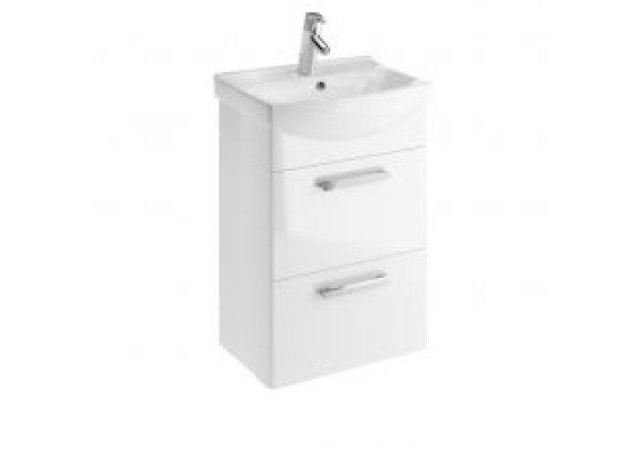 Проста конструкція та матеріал, з якого виготовлена шафа MELAR під умивальником, забезпечують комфортну та зручну чистку. Шафа оснащений двома просторими ящиками та практичними та елегантними хромованими ручками. Модель призначена для підвісної або стоячої установки під умивальник COMO 50.