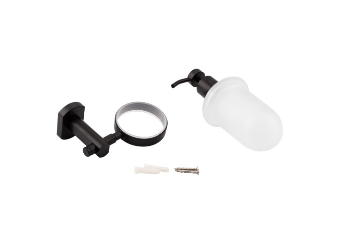 Дозатор для рідкого мила Qtap Liberty BLM 1152 робить процес миття рук гігієнічним і швидким. Латунний тримач дозатора у вигляді кронштейна з кільцем має антикорозійні властивості і кріпиться на стіну. Пляшка виконана з матового скла. Дизайн дозатора підходить за дизайном до інших аксесуарів такого ж кольору, чудово доповнить невеликі санвузли і, завдяки своїм розмірам, може кріпитися в будь-якому зручному та доступному місці. Не займає місце на раковині.