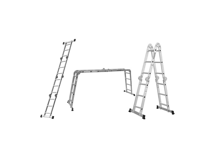 Драбина багатоцільова 4 * 3 (алюмінієва) FLORA (5031314) призначена для професійного і побутового використання при виконанні будь-яких видів будівельно-монтажних робіт. Легко складається і може використовуватися як приставні сходи. Особливості: міцний профіль; протизсувні черевики; міцні і безпечні шарніри; малі габарити; швидка розбирання та збирання. Характеристики: 4 секції по 3 ступені; висота в розкладеному положенні - 3.7м; висота в складеному і робочому положенні - 1.03м; висота в положенні драбини - 1.8м; висота ступеня - 0.28м; ширина - 0.35м.
