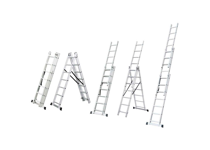 Драбина котра розкладається універсальна 12 сходинок FLORA (5032354) призначена для внутрішніх і зовнішніх будівельних та ремонтних робіт, збору врожаю в саду. Можливе використання в якості приставних, висувної драбини та стоячої драбини. Особливості: міцний направляючий профіль, що забезпечує зручне висунення драбини; широка поперечна траверса для збільшення опорної площі; не зсувні рифлені щаблі; протиковзні черевики; самофіксуючі гачки-засувки для фіксації при роботі і транспортуванні; стійкі до атмосферних впливів ремені, що запобігають довільному розсування боковин. Характеристики: 3 секції по 12 ступенів; максимальна висота - 7.9м; висота в складеному стані - 3.4м; висота у вигляді драбини - 3.3м; висота у вигляді альфа-драбини - 5.7м; висота ступеня - 0.28м.