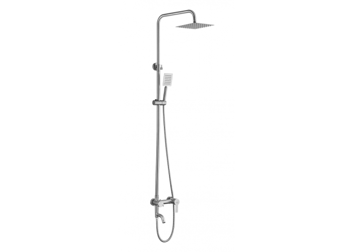 Модель Wezer STK-01EKO це душова панель, яка крім першокласного сучасного дизайну володіє якістю і довгим експлуатаційним періодом. Основа являє собою штангу, яка одночасно є трубою, через яку подається вода в верхній душ. Додатково панель комплектується одноважільним змішувачем, ручний лійкою, держателем для неї, тропічним душем і шлангом.