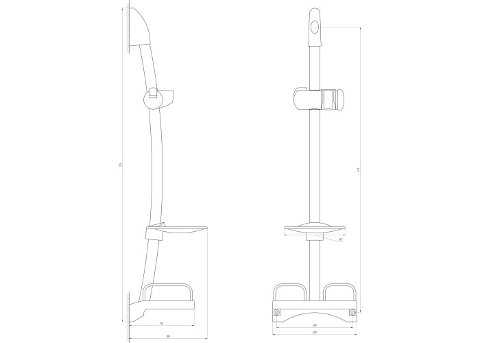 Душова стійка Dishi L106-TP-C з подвійною полицею-мильницею Nozzle