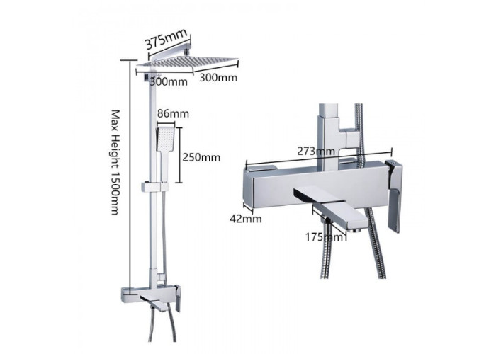 - Хромована душова стійка з регульованою висотою 945-1500 мм.