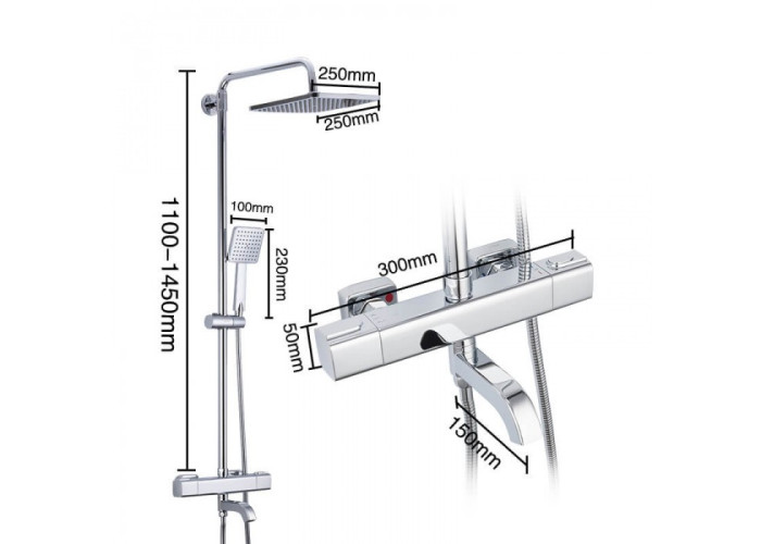 Дана душова система допоможе організувати повноцінний комплекс для комфортного прийняття гігієнічних процедур. Одним з головних комплектуючих є термостатичний змішувач, завдяки якому ви будете насолоджуватися заданої вами температурою і напором води незважаючи на зміни у водопровідній системі. Прилад обладнаний коротким, поворотним гусаком, який крім основного призначення, також служить перемикачем води зі змішувача на душову лійку.