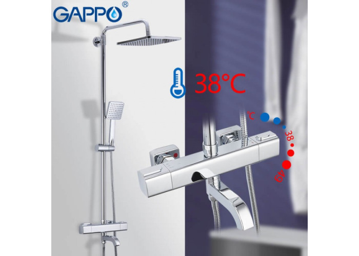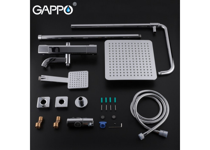 Gappo G2491 має регульовану по висоті штангу (1100-1450 мм), верхня частина якої обладнана тропічним душем діаметром 250 мм. Також в комплекті присутній шланг, однорежимні душова лійка і регульований тримач для неї. Вся конструкція монтується настінним способом за допомогою кріплень і ексцентриків. Першокласний сучасний дизайн системи відмінно впишеться в будь-який інтер'єр, а з огляду на свою компактність буде доречний навіть в обмеженому просторі душовою або ванної кімнати.