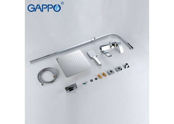 Gappo Jacob G2407 має регульовану по висоті штангу (843-1570 мм), верхня частина якої обладнана тропічним душем діаметром 300 мм. Також в комплекті присутній шланг, однорежимні душова лійка і регульований тримач для неї. Вся конструкція монтується настінним способом за допомогою кріплень і ексцентриків. Першокласний сучасний дизайн системи відмінно впишеться в будь-який інтер'єр, а з огляду на свою компактність буде доречний навіть в обмеженому просторі душовою або ванної кімнати.