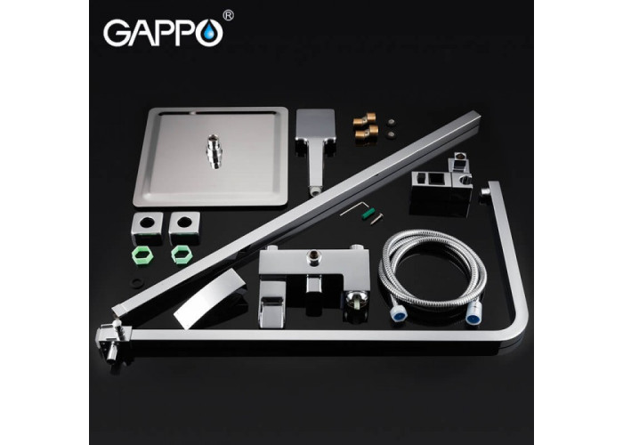 Gappo Jacob G2407-20 має регульовану по висоті штангу (843-1570 мм), верхня частина якої обладнана тропічним душем діаметром 300 мм. Також в комплекті присутній шланг, однорежимні душова лійка і регульований тримач для неї. Вся конструкція монтується настінним способом за допомогою кріплень і ексцентриків. Першокласний сучасний дизайн системи відмінно впишеться в будь-який інтер'єр, а з огляду на свою компактність буде доречний навіть в обмеженому просторі душовою або ванної кімнати.