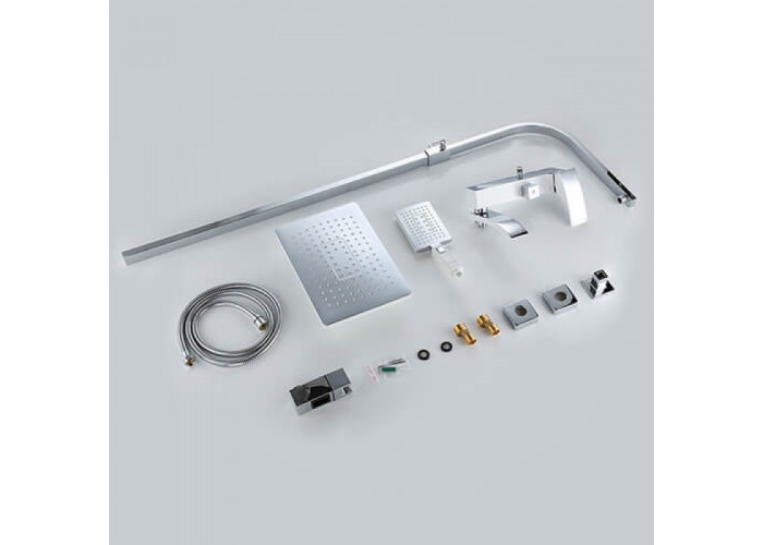 Дана душова система допоможе організувати повноцінний комплекс для комфортного прийняття гігієнічних процедур. Одним з головних комплектуючих є змішувач змішувач з картриджем 35мм, завдяки якому ви будете насолоджуватися безшумною і якісною роботою системи протягом багатьох років. Прилад обладнаний коротким, поворотним гусаком, який крім основного призначення, також служить перемикачем води зі змішувача на душову лійку.