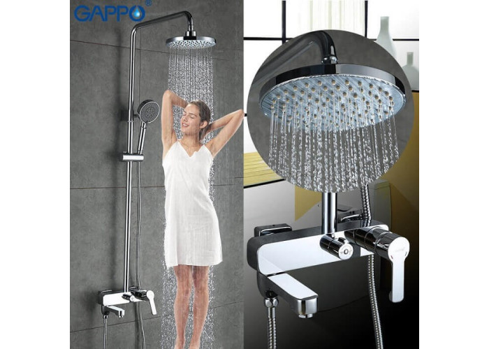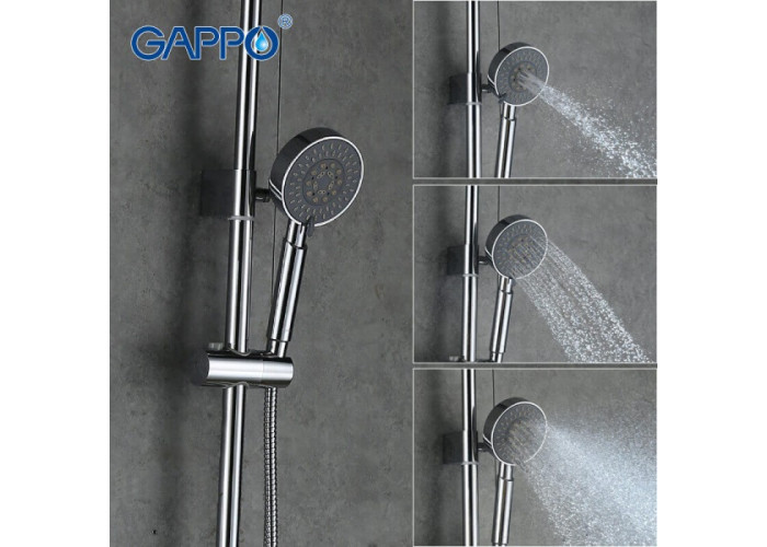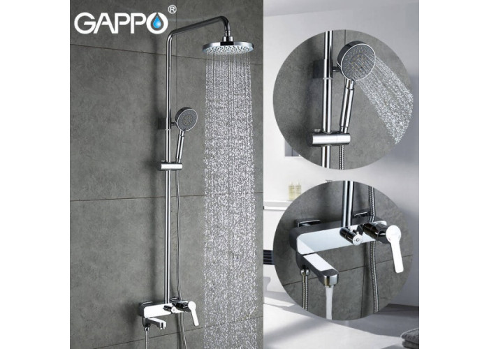 Gappo Tomahawk G2402 має регульовану по висоті штангу (800-1500 мм), верхня частина якої обладнана тропічним душем діаметром 200 мм. Також в комплекті присутній шланг, режимний душова лійка і регульований тримач для неї. Вся конструкція монтується настінним способом за допомогою кріплень і ексцентриків. Першокласний сучасний дизайн системи відмінно впишеться в будь-який інтер'єр, а з огляду на свою компактність буде доречний навіть в обмеженому просторі душовою або ванної кімнати.