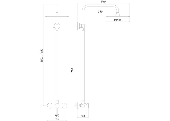 - верхній душ - кругла лійка ø25 см, стійка (85-125 см)