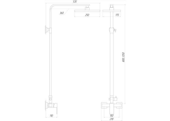 - верхній душ - квадратна лійка 25 см, стійка (85-140 см)