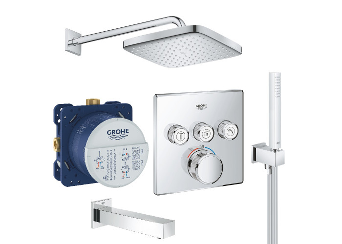 Душова система Grohe Grohtherm SmartControl 26415SC2 складається з верхнього і ручного душу, виливу та змішувача. Прихований спосіб монтажу дозволяє збільшити варіанти розташування елементів системи, а наявність термостатичного змішувача дає можливість автоматично регулювати змішування води для більш комфортного користування. Цей виріб можна розміщувати як над ванною, так і в душовій кабіні.
