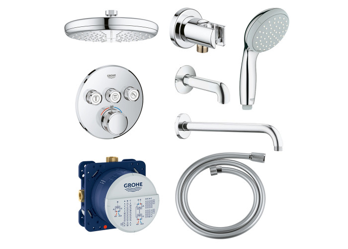 Душова система Grohe Grohtherm SmartControl 34614SC2 складається з верхнього і ручного душу, виливу та змішувача. Прихований спосіб монтажу дозволяє збільшити варіанти розташування елементів системи, а наявність термостатичного змішувача дає можливість автоматично регулювати змішування води. Цей виріб можна розміщувати як над ванною, так і в душовій кабіні. Завдяки функції оптимального розподілу води душові процедури можуть стати ще більш комфортними.