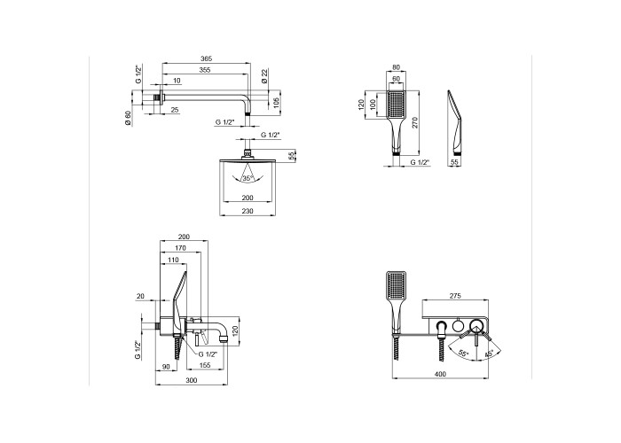 Довжина кронштейна для верхнього душу, мм 365