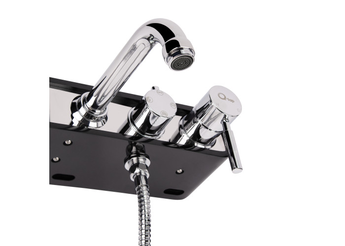 Душова система Qtap BLA 1111 забезпечить максимально комфортний прийом душу. Вона складається з верхнього і ручного душу та змішувача. Тривалий термін служби забезпечують довговічна, зносостійка латунь і міцний пластик, з яких виготовлено виріб. Завдяки прихованому монтажу комплектуючі системи можуть розміщуватися на різних стінах. Дана система може бути змонтована як над ванною, так і в душовій кабіні.