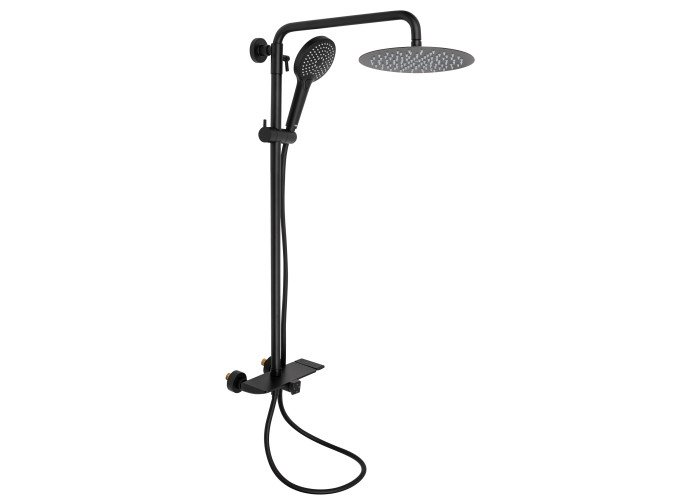 Душова система Qtap Sloup 51105OGB складається з душової стійки з верхнім і ручним душем, а також змішувача. Лійка для ручного душу має 3 режими подачі води, а змішувач має оригінальний зовнішній вигляд, завдяки чому виріб стане яскравим акцентом в оформленні ванної кімнати. Система виготовлена зі стійкої латуні і міцного пластику, що дозволить подовжити термін експлуатації. Завдяки кріпленням, що входять до комплектації, встановлення не займе багато часу.