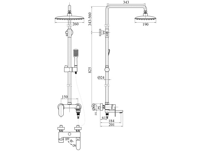 Вид монтажу душової системи: Настінний, на 3 виходу води