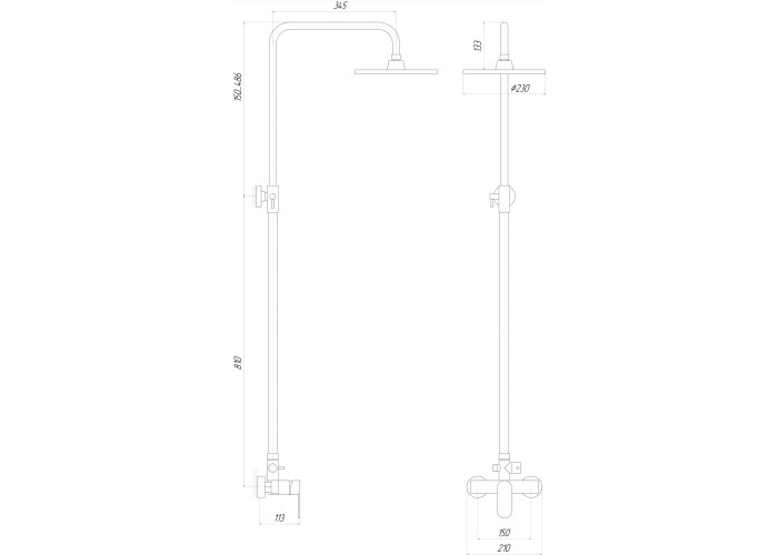Вид монтажу душової системи: Настінний, на 2 виходу води