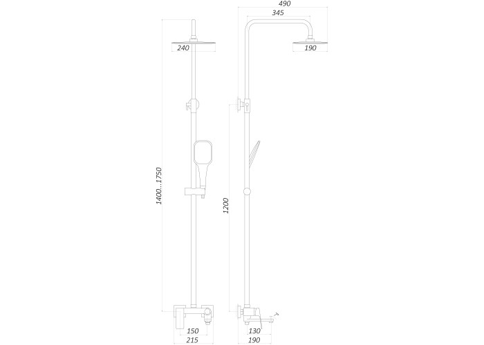 Вид монтажу душової системи: Настінний, на 2 вихода
