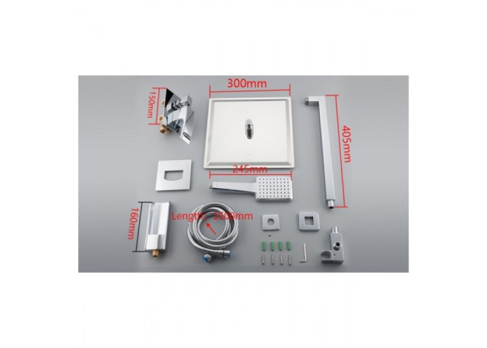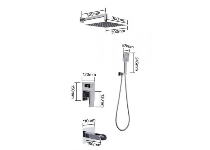 Хромоване покриття всіх комплектуючих відмінно виглядає в будь-якому інтер'єрі поєднуючись з іншими сантехнічними приладами. Пластина змішувача прямокутної форми має розміри 15х12 см. Діаметр тропічного душа 30 см, а довжина кріплення 40,5 см. В комплекті передбачені всі кріплення. Доступна ціна та висока якість роблять дану модель однієї з найбільш затребуваних на сучасному ринку сантехнічних пристроїв.
