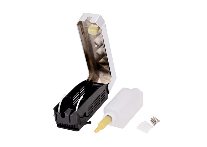 Диспенсер для рідкого мила Davcovac mydla DM350CP1 виготовлено з пластика з хромованою поверхнею. Отвори з боків допоможуть контролювати залишок рідкого мила. Зручний натискний механізм управління і простота наповнення резервуара є незаперечними перевагами виробу. Завдяки настінному монтажу виріб не займає багато місця і може бути розміщений в будь-якому зручному місці санвузла.