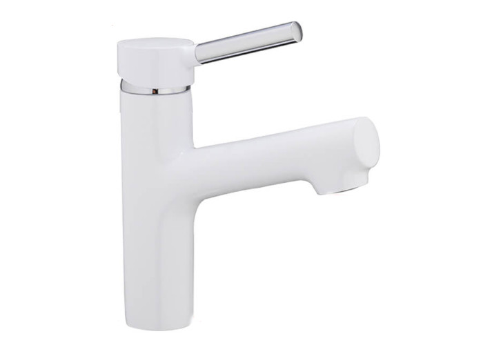 Змішувач для умивальника FRAP F1044-8 з литим гусаком з вбудованим аератором. Кріплення змішувача - гайка, діаметр картриджа Ø35 мм. Матеріал – латунь з хромованими елементами, покриття корпусу - біла емаль. В комплект поставки входить змішувач, кріплення, гнучкі підведення. Італійські технології лиття роблять внутрішню і зовнішню поверхню змішувача Frap ідеально гладенькою і покращують його антикорозійні властивості. Країна-виробник - Китай.