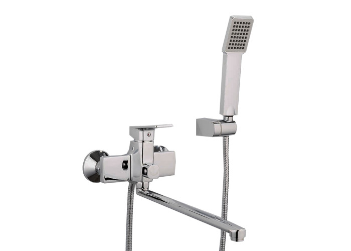 Хромований картриджний змішувач для ванни FRAP F2246 з довгим поворотним плоским гусаком з вбудованим аератором. Європеремикач на душ. Матеріал корпусу – латунь з хромованим покриттям, яке захищає змішувач від корозії. Кріплення моделі – настінне, діаметр картриджа - 35 мм. В комплект поставки входить змішувач, душова лійка, шланг для душу, тримач для лійки, комплект для кріплення. Італійські технології лиття роблять внутрішню і зовнішню поверхню змішувача Frap ідеально гладенькою і покращують його антикорозійні властивості. Країна-виробник - Китай.