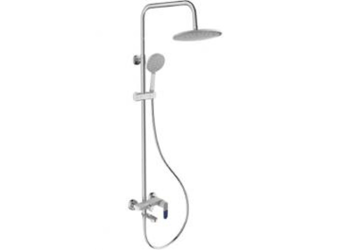 Хромована душова панель. Тіло змішувача – біла емаль. Матеріал – латунь. Лійка верхній душ (тропічний душ). Кріплення настінне. В комплекті йдуть 6 кольорових накладок для ручки змішувача. Висота: 135 см, довжина душового шланга: 150 см. Діаметр тропічного душа: 25 см. Італійські технології лиття роблять внутрішню і зовнішню поверхню змішувача Frap ідеально гладенькою і покращують його антикорозійні властивості. Країна-виробник - Китай.