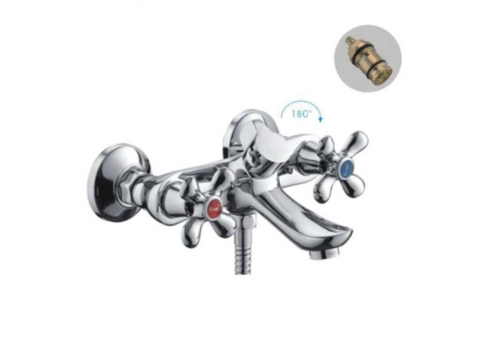 Вентильний змішувач для ванни FRAP F32731-B (H731) з коротким литим гусаком з вбудованим аератором. Матеріал корпусу – силумін з хромованим покриттям, яке захищає змішувач від корозії. Кріплення моделі – настінне. Буксовий перемикач на душ. В комплект поставки входить змішувач, душова лійка, шланг для душу, тримач для лійки, кріплення. Продукція Frap виготовлена відповідно до європейського стандарту CE і міжнародного стандарту ISO. Відмінною особливістю Frap можна назвати різноманітність варіантів дизайну. Італійські технології лиття роблять внутрішню і зовнішню поверхню змішувача ідеально гладенькою і покращують антикорозійні властивості виробу. Країна-виробник – Китай.