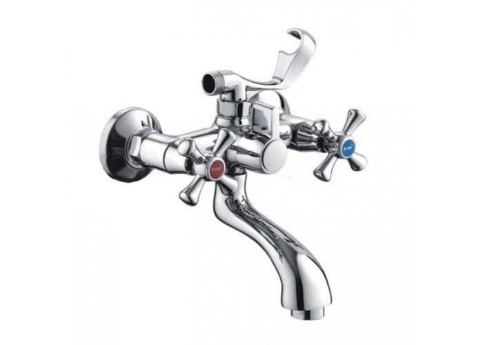 Вентильний змішувач для ванни FRAP F32732-B (H732) з коротким литим гусаком з вбудованим аератором. Матеріал корпусу – силумін з хромованим покриттям, яке захищає змішувач від корозії. Кріплення моделі – настінне. Картриджний перемикач на душ. В комплект поставки входить змішувач, душова лійка, шланг для душу, тримач для лійки, кріплення. Продукція Frap виготовлена відповідно до європейського стандарту CE і міжнародного стандарту ISO. Відмінною особливістю Frap можна назвати різноманітність варіантів дизайну. Італійські технології лиття роблять внутрішню і зовнішню поверхню змішувача ідеально гладенькою і покращують антикорозійні властивості виробу. Країна-виробник – Китай.