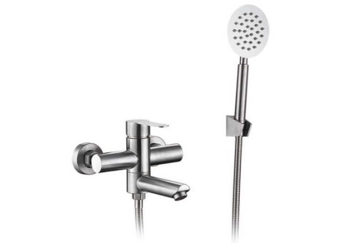 Змішувач для ванни FRAP F32801 (H801) з коротким гусаком з вбудованим аератором. Кріплення змішувача - настінне, діаметр картриджа Ø35 мм. Європеремикач на душ. Матеріал – нержавіюча сталь. В комплект поставки входить змішувач, комплект кріплень, лійка, тримач і шланг для душу. Італійські технології лиття роблять внутрішню і зовнішню поверхню змішувача Frap ідеально гладенькою і покращують його антикорозійні властивості. Країна-виробник - Китай.