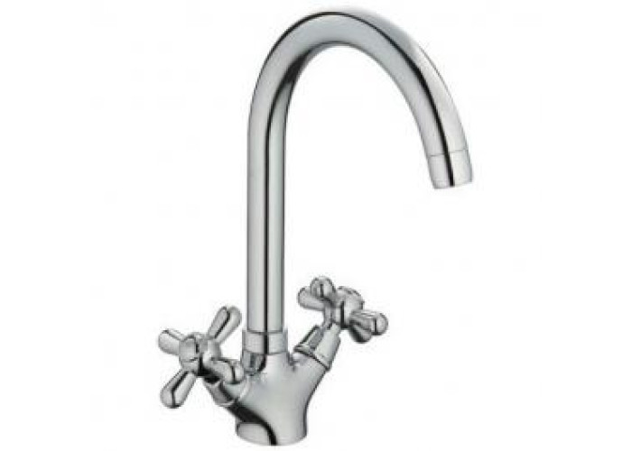Хромований вентильний змішувач для кухні FRAP F4025 з U-подібним гусаком. Кріплення – шпилька. Матеріал корпусу – латунь з хромованим покриттям, яке захищає змішувач від корозії. В комплект поставки входить змішувач, кріплення, гнучке підведення. Італійські технології лиття роблять внутрішню і зовнішню поверхню змішувача Frap ідеально гладенькою і покращують його антикорозійні властивості. Країна-виробник - Китай.