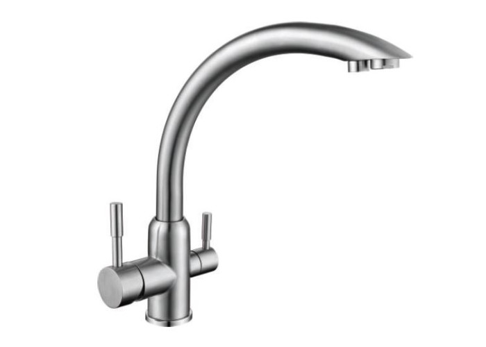 Змішувач для кухні FRAP F43899 (H899) з високим поворотним гусаком з вбудованим аератором. Модель виконана з нержавіючої сталі, яка надає їй стильний сучасний вигляд. Картридж - Ø35, кріплення на гайці. Головна особливість змішувача – можливість підключати систему фільтрації, що дає змогу пити чисту корисну воду прямо з-під крана. В комплект поставки входить змішувач, кріплення, гнучкі підведення. Італійські технології лиття роблять внутрішню і зовнішню поверхню змішувача Frap ідеально гладенькою і покращують його антикорозійні властивості. Країна-виробник - Китай.