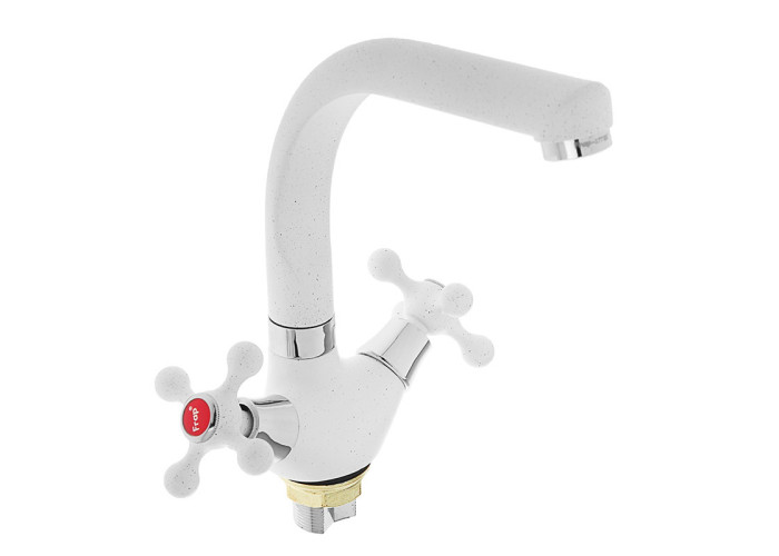 Вентильний змішувач для кухні FRAP F5408-8 (F54) з гусаком з вбудованим аератором. Матеріал – силумін, покриття - біла емаль з хромованими елементами, яке робить змішувач стійкішим до пошкоджень. Кріплення - гайка. В комплект поставки входить змішувач, гнучкі підведення, кріплення. Продукція Frap виготовлена відповідно до європейського стандарту CE і міжнародного стандарту ISO. Відмінною особливістю Frap можна назвати різноманітність варіантів дизайну. Італійські технології лиття роблять внутрішню і зовнішню поверхню змішувача ідеально гладенькою і покращують антикорозійні властивості виробу. Країна-виробник – Китай.