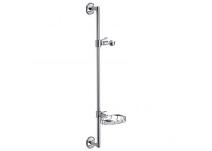 Душова металева стійка з хромованим покриттям, довжина 75 см, з мильницею і тримачем для душової лійки в комплекті. Настінне кріплення. Країна-виробник - Китай.