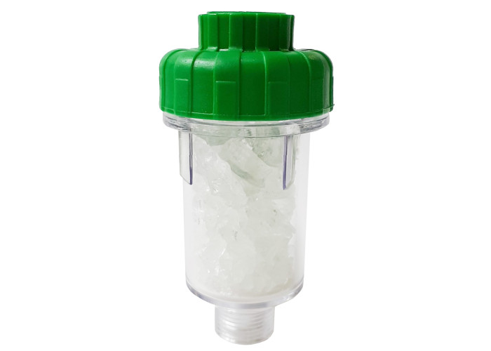 Всередині прозорої колби засипані кристали поліфосфату натрію. Вони розчиняються в воді, чим унеможливлюють появу накипу на нагрівальних елементах пральної та посудомийної машини.