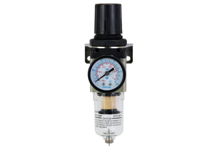 Фільтр вологовідділювач з редуктором і манометром 600л / хв 1/4 "Sigma Refine (7034341) призначений для очищення стисненого повітря від твердих частинок, води, конденсату, масляної емульсії та інших домішок. Здійснює автоматичне підтримання величини тиску на заданому рівні в пневматичній системі. Переваги: корпус виготовлений зі сплаву на основі алюмінію; колба для збору конденсату виготовлена ​​з полікарбонату; фільтруючий елемент з пористого сплаву на основі міді; редуктор і манометр для регулювання тиску; висока пропускна здатність повітря.
