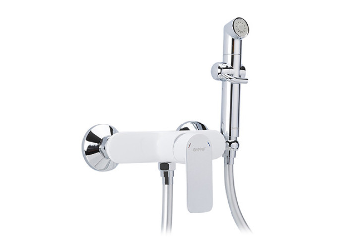 Змішувач для душу Gappo Noar G2048-8 з гігієнічною лійкою. Кріплення – настінне. Діаметр картриджа - Ø35. Покриття корпусу – біла емаль з хромованими елементами, матеріал латунь. В комплект поставки входить змішувач, кріплення, тримач і лійка для гігієнічного душу. Країна-виробник - Китай. Спеціальна технологія робить керамічну частину картриджа змішувача Gappo ідеально рівною і гладкою, що дозволяє виключити пошкодження і тріщини, а також запобігає утворенню накипу. Картриджі мають непористу структуру і навіть з плином часу залишаються ідеально гладкими. В змішувачах Gappo використовується аератор NeoPerl, який робить потік води м'якшим і дозволяє економити до 30% води при щоденному використанні.