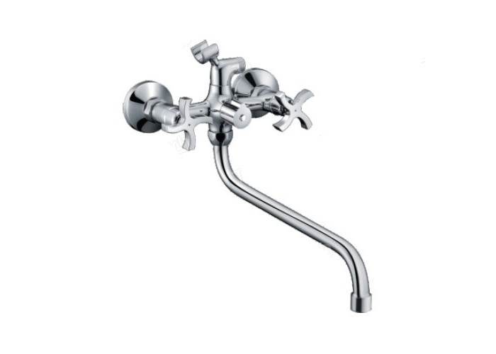 Хромований вентильний змішувач для ванни Gappo Pollmn G2243 з довгим, фігурним поворотним гусаком. Вентилі-хрестики. Кріплення настінне. Матеріал – латунь з хромованим покриттям, яке захищає змішувач від корозії і має приємний зовнішній вигляд В комплект поставки входить змішувач, душова лійка, шланг для душу, тримач для лійки на корпусі змішувача, кріплення. Країна-виробник - Китай. В змішувачах Gappo використовується аератор NeoPerl, який робить потік води м'якшим і дозволяє економити до 30% води при щоденному використанні.